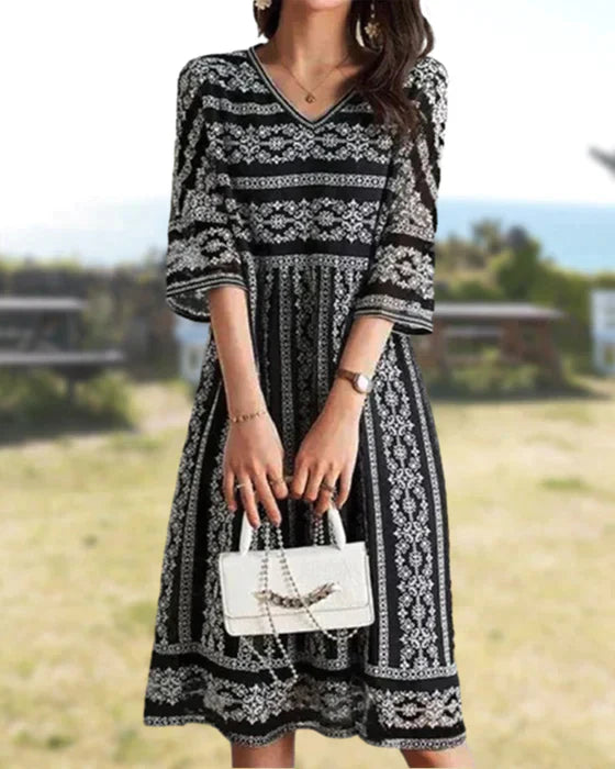 Robe d'été à col en V pour femmes - Elena avec un bel imprimé