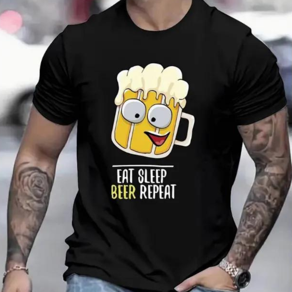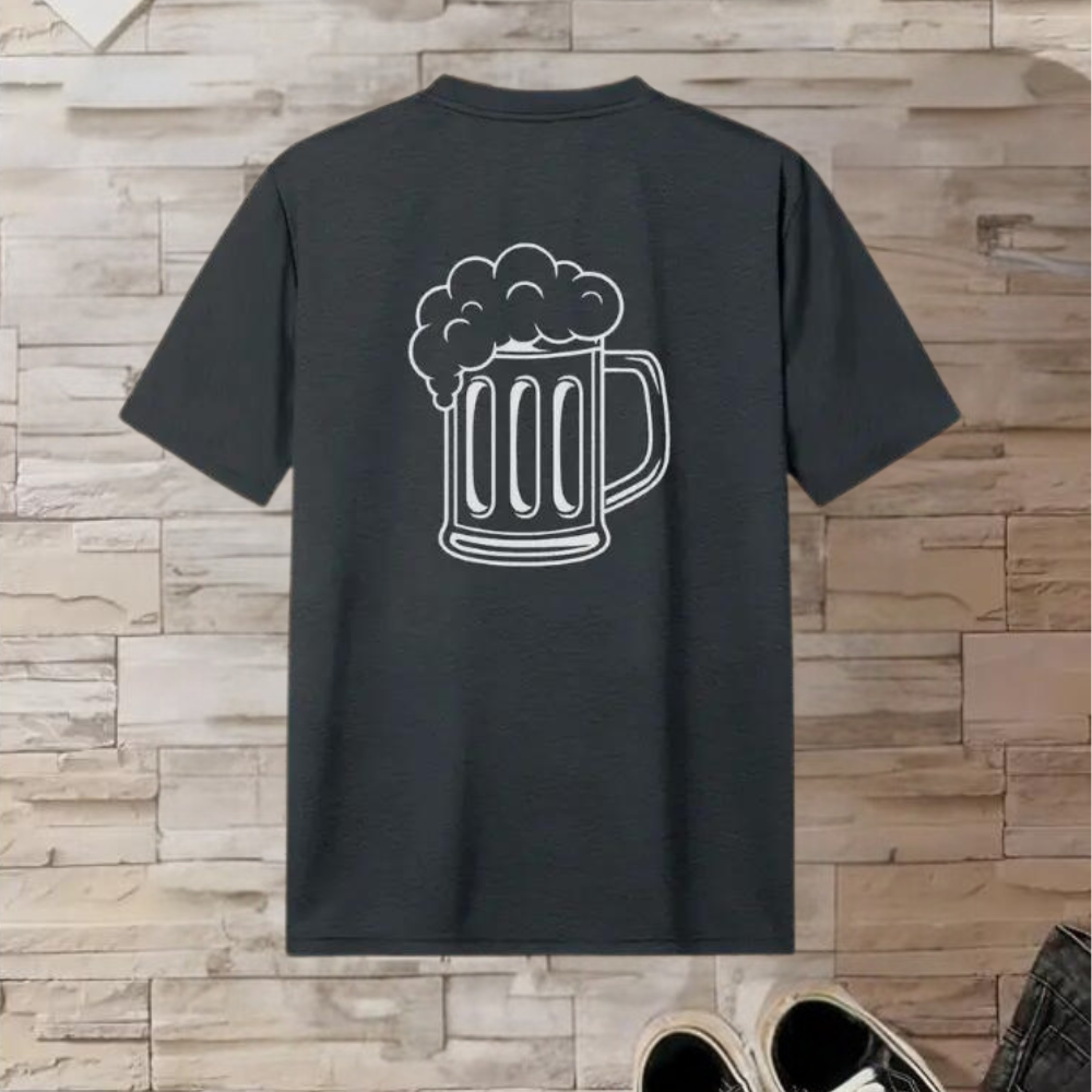 Georgios - T-shirt tendance Oktoberfest pour hommes avec impression amusante sur le dos de la bière